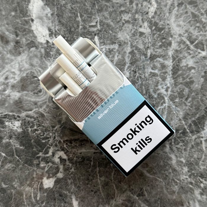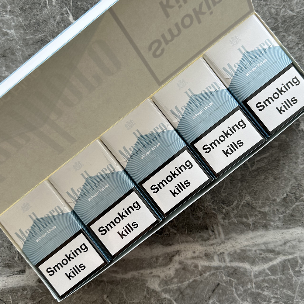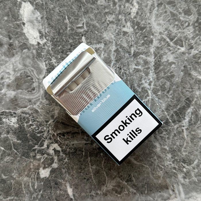 Marlboro Silver Blue cigarettes. A popular type of cigarette from the Marlboro brand due to its smooth flavour and it being mid-priced.