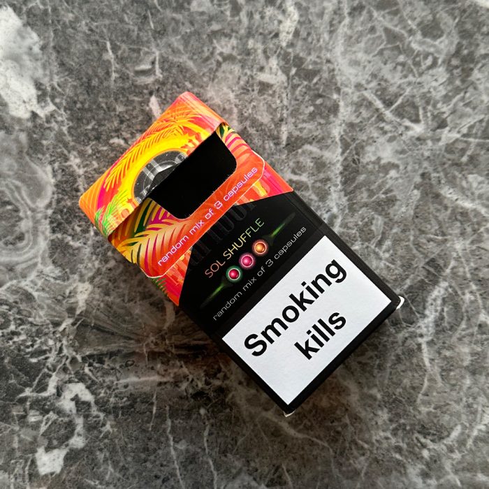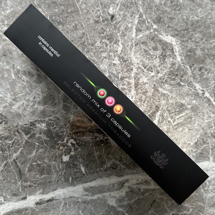 It comes in a compact pack with cigarettes of 7mm diameter. Innovative technology allows you to enjoy mix of three random flavors. The capsule of menthol gives a real fresh touch and the others tropical fruit capsules provide unique taste to every single cigarette.