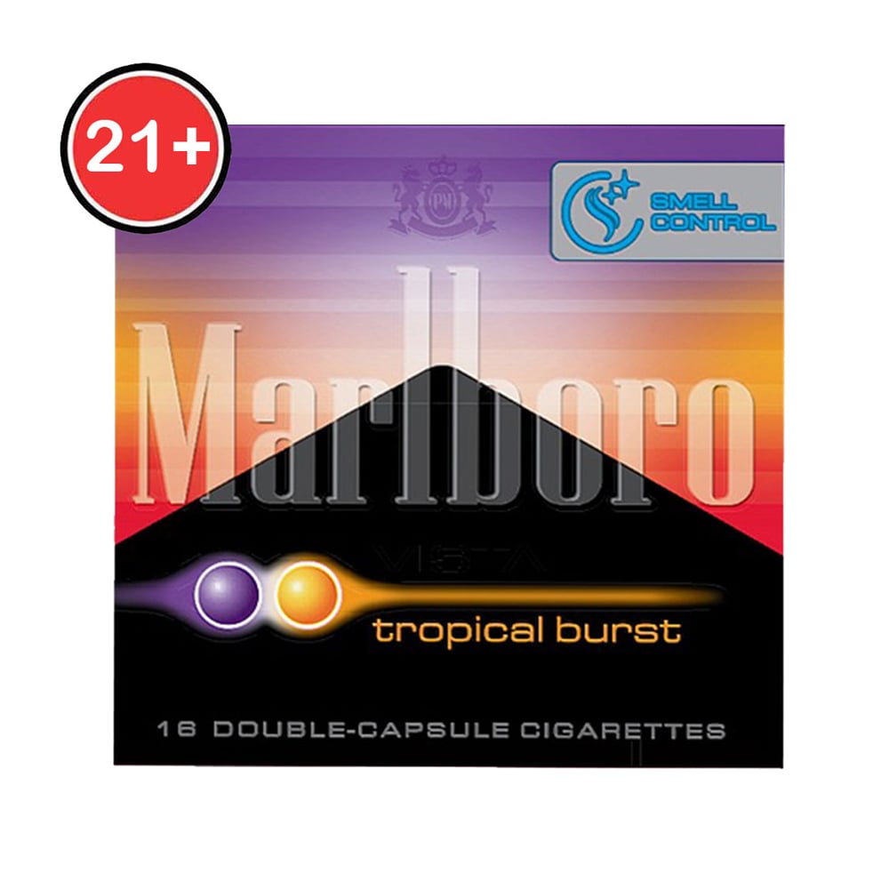 Marlboro Vista Tropical Burst cigarettes. Marlboro Vista Tropical Burst, introduced by Marlboro for the first time in the world, provides a unique tropical taste and cool scent suitable for the summer season. With a pleasantly fresh and sweet scent, it is easy to enjoy in summer without burden. Because it is composed of double capsules, you can enjoy the taste according to your taste. Mango and Berry flavored capsules.